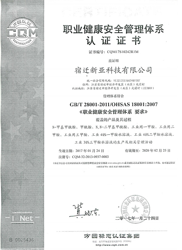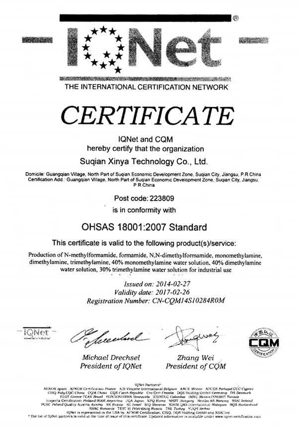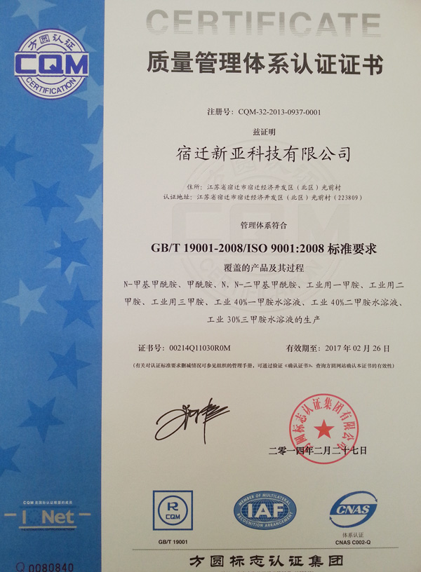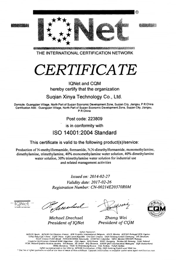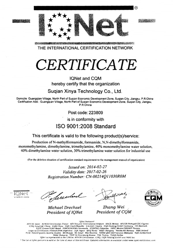 Our main products are Formamide(FA), N-Methylformamide(NMF), Monomethylamine, Dimethyl amine and Trimethyl amine,N,N-diethylformamide; N-ethylformamide and Methylformate etc.